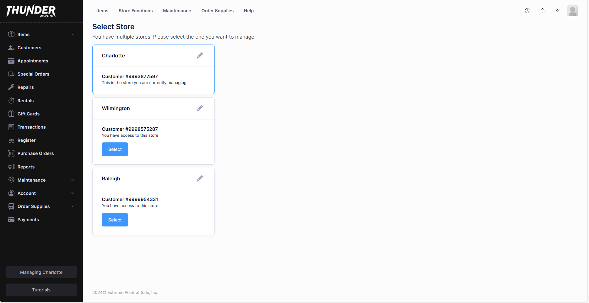 Enterprise refers to a set of capabilities available to those wishing to manage a chain of stores through ThunderPOS. These features allow you to do powerful things across all of your stores, but you can also rapidly switch between individual store views in the backoffice by clicking the store name in the top left.