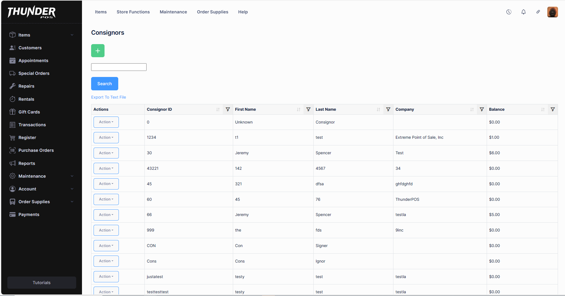 Consignors can be managed through the backoffice under the master lists section of items. Current consignors will be listed in the table.