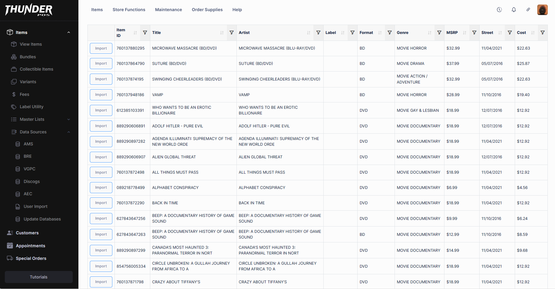 Item Maintenance