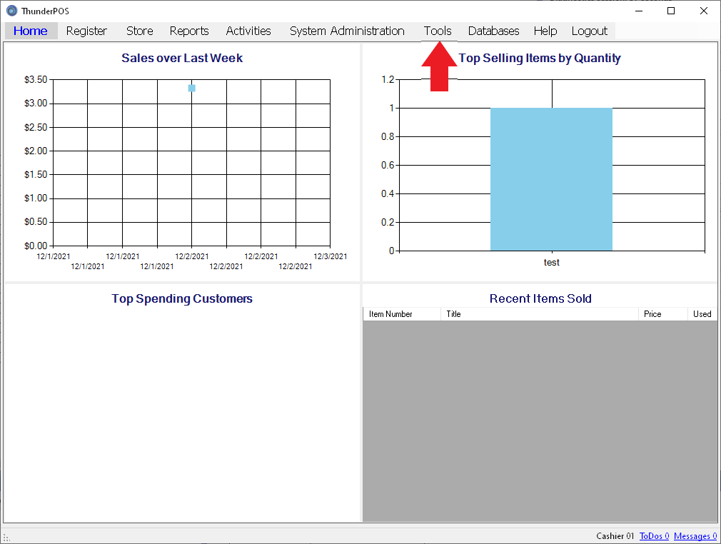 The Tools menu contains more niche functionality that may be useful to particular stores.