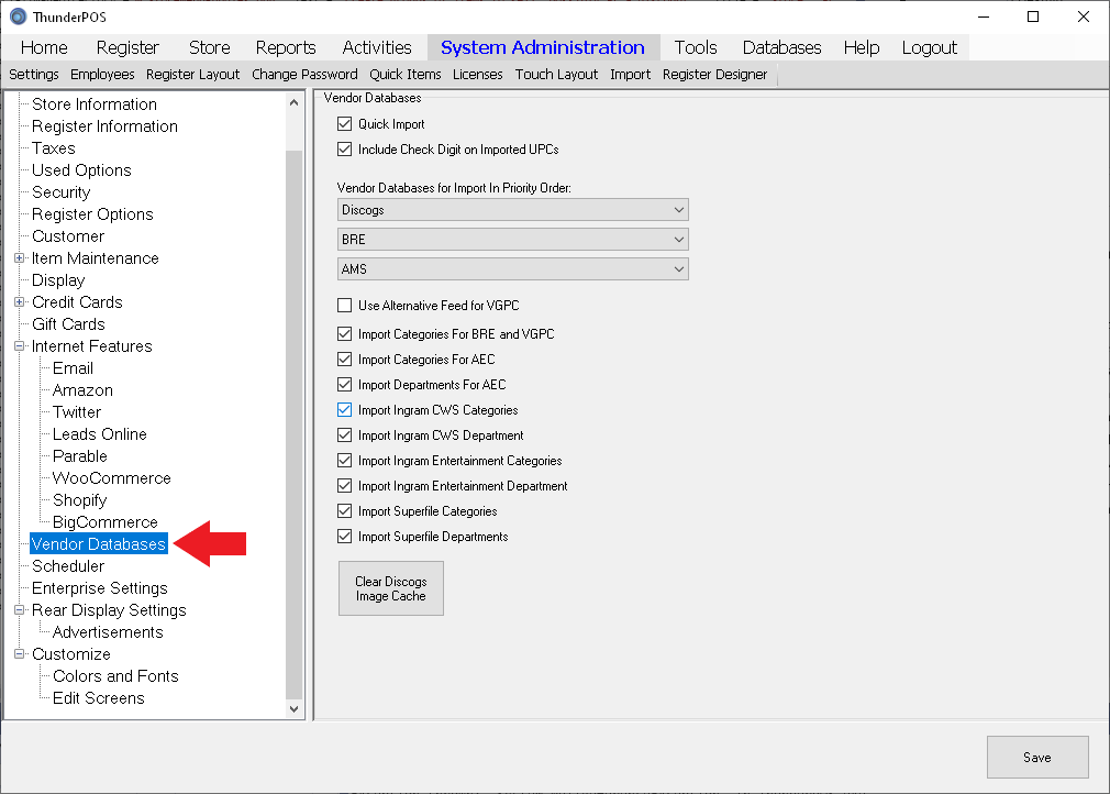 These settings control your vendor databases. Many of these require either an additional subscription, or credentials or a file from the vendor.