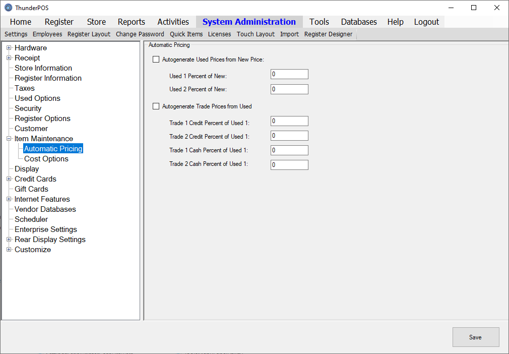 These options control automatically generating the used and tradein prices off percentages from the new price.