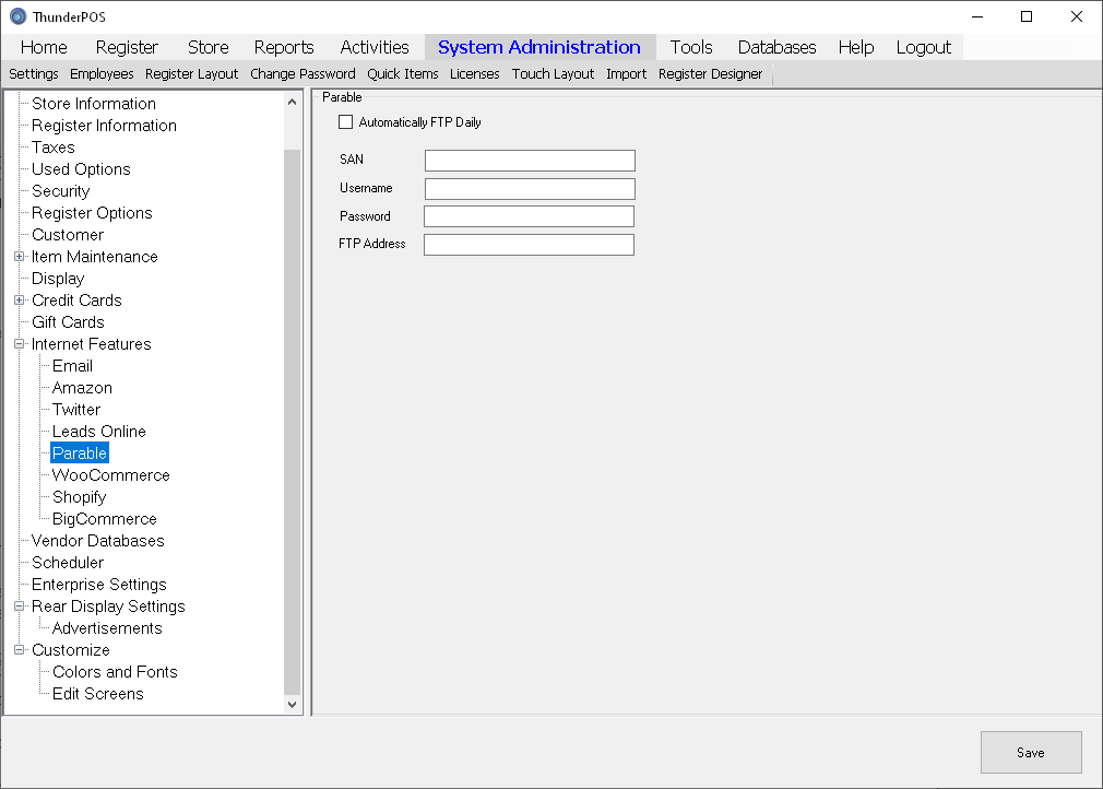 These settings are used for automated reporting of sales to Parable, a sales tracker for Christian Bookstores.