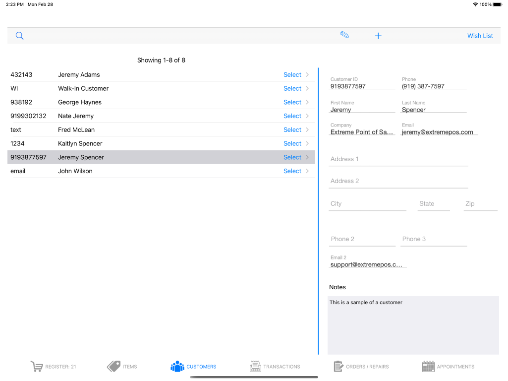 The Customers Screen is where you can view and edit certain information about the customers in your store database, as well as enter new customers.