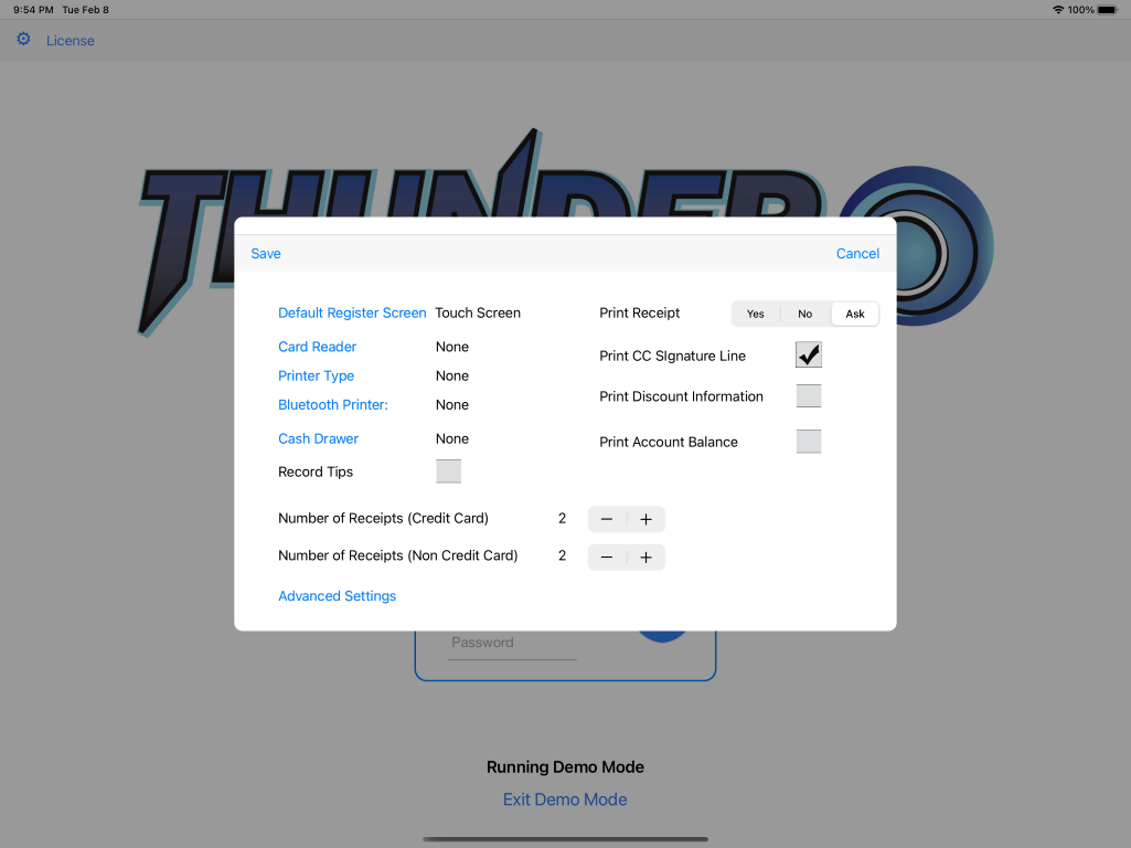On this screen, you can set your register-specific settings.